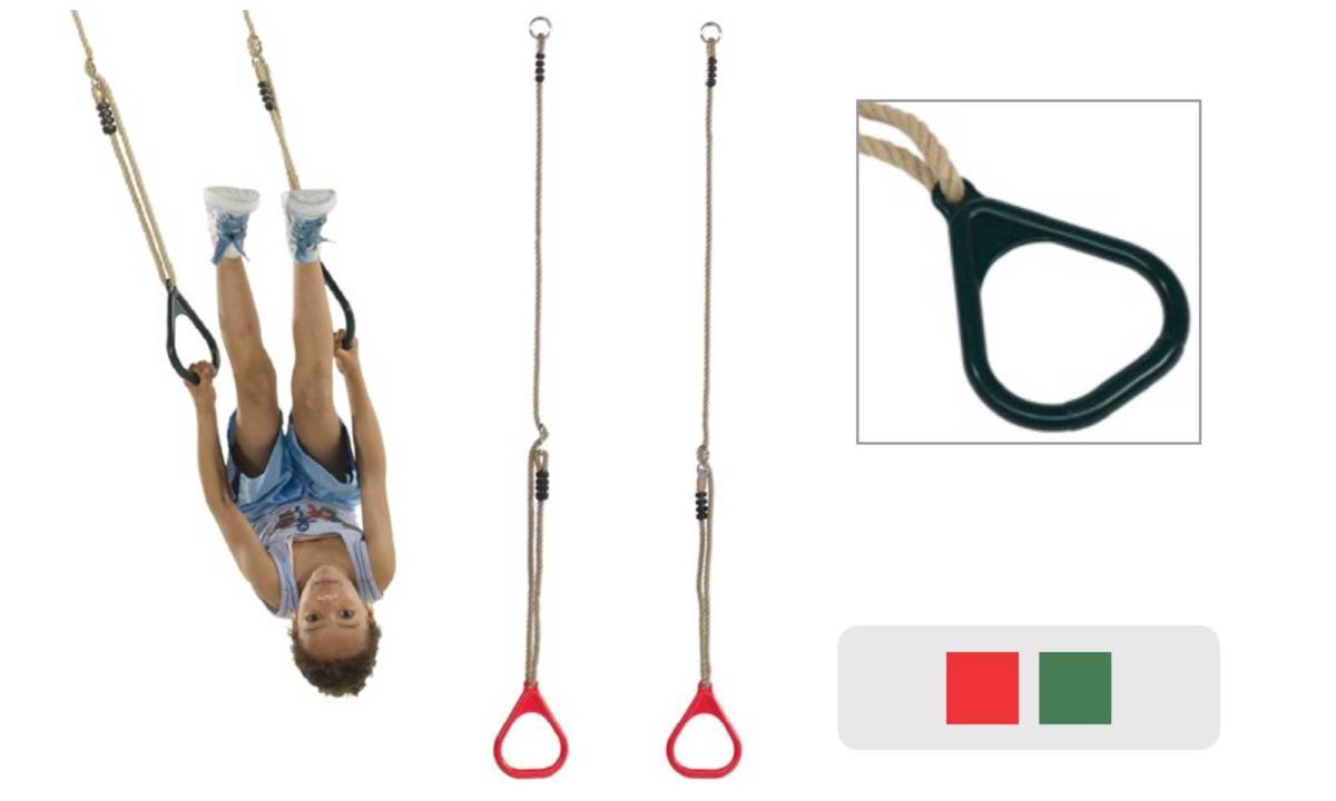 This item is designed to help with upper body strength while free swinging in the air holding on to the metal rings or hanging upside down with the use of the bar and provides the child with confidence and enjoyment at the same time.