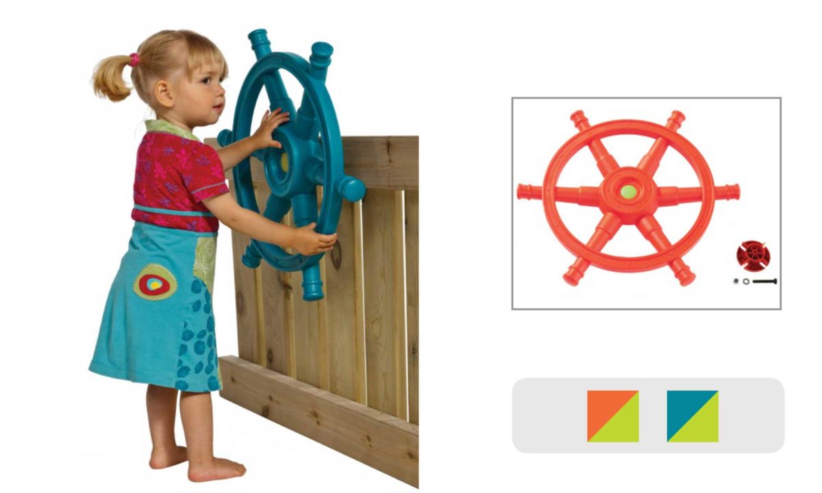 This additional item can be added to the play area and lets the child image being a sea caption sailing off to a magical destination or being a caption of pirate ship etc. while teaching them the technique of turning left to right and right to left or in a full circular motion.